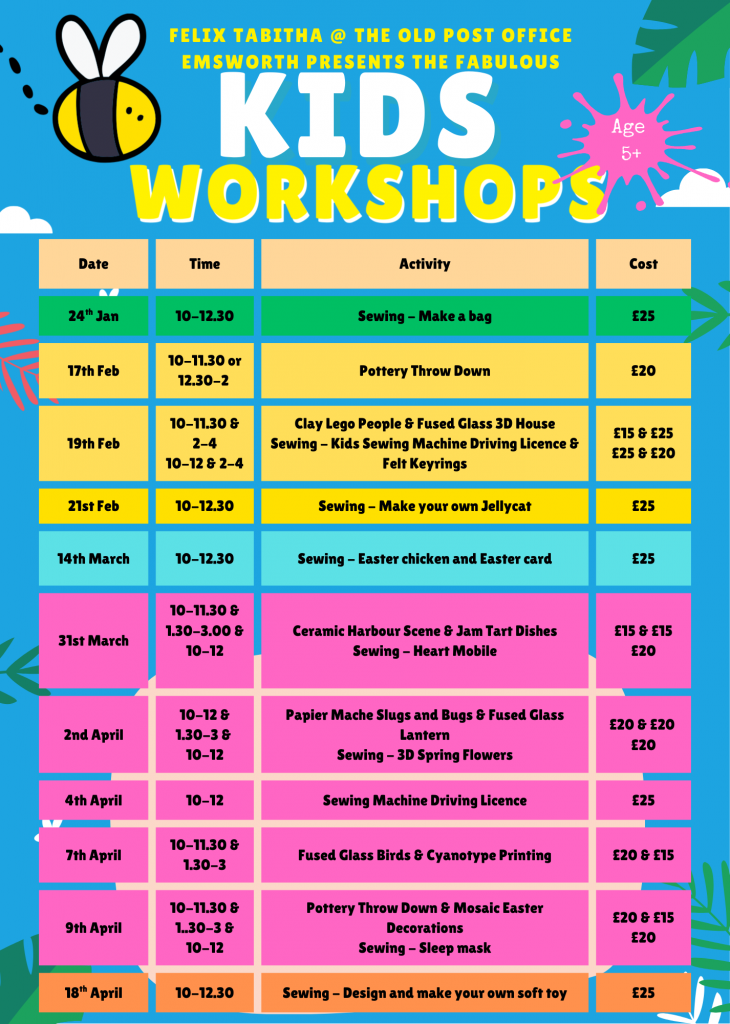 KIDS POTTERY AND CERAMIC CLUB – a weekly or bi-weekly club. more info and to book here: Kids Pottery and Ceramic Club – Felix Tabitha