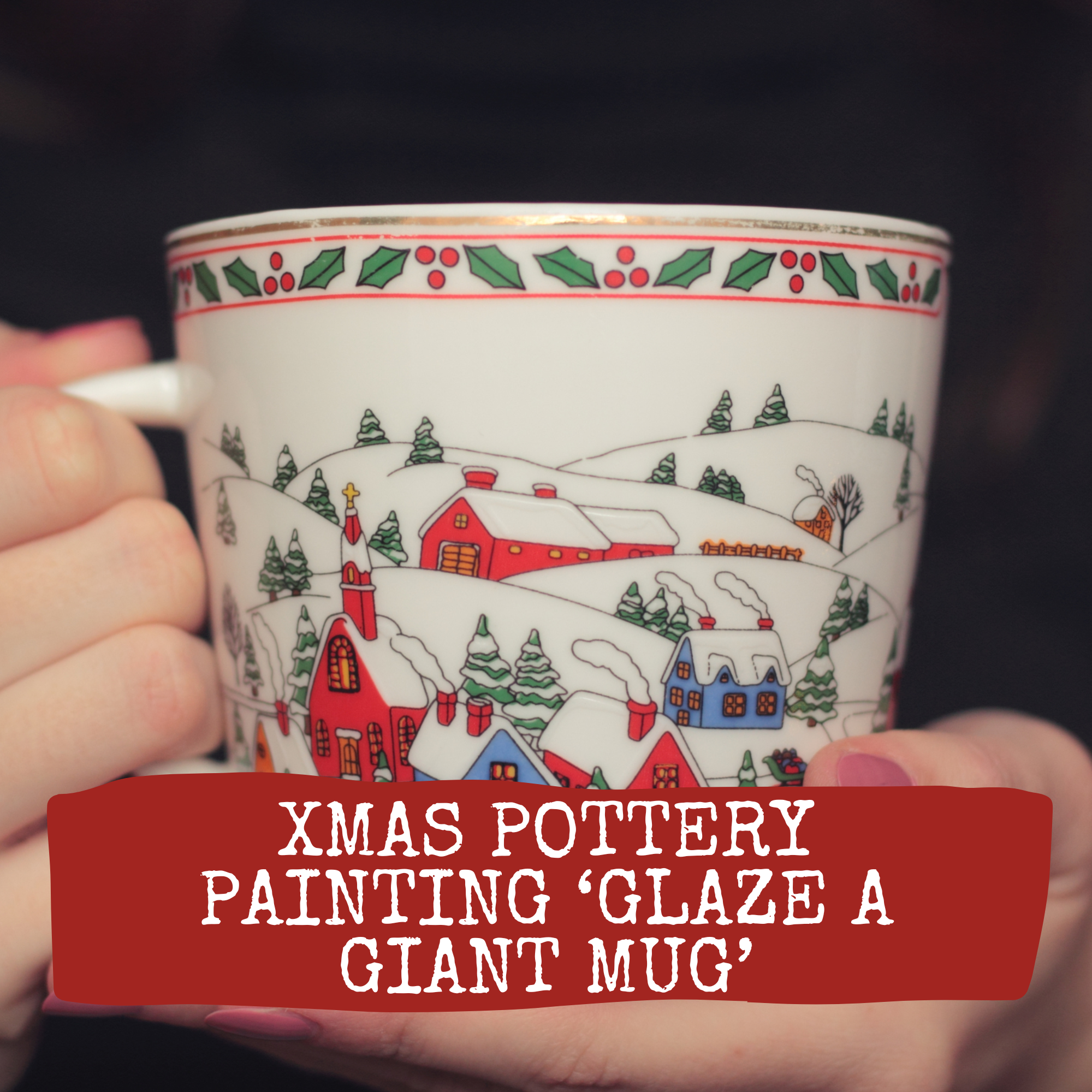 This is a pottery painting (glazing) workshop with a difference… design and glaze a giant mug with your own colours and designs/patterns whilst drinking hot chocolate and eating Christmas cookies.  The mug can be for you or even for Santa’s Christmas Eve goodies. Suitable for all including families or friend groups.